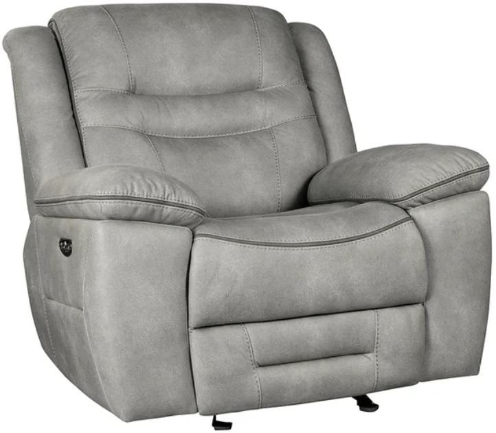 Transform your living room into a haven of relaxation with our dual power recliner. Designed to effortlessly blend style and comfort, this recliner brings a touch of elegance to any space, with its warm gray upholstery and sleek, design that invites you to unwind in luxury. From your first cup of morning coffee to your late night movie marathon, the Harley recliner is there to support and cushion your quiet time.Read More