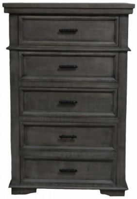 Complete your bedroom idea with this Sam Chest from Million Dollar Rustic. Shown in distressed gray finish, this chest has five drawers that provides ample amount of room for your storage needs. Update your space with style and functionality by incorporating this piece into your bedroom.Read More
