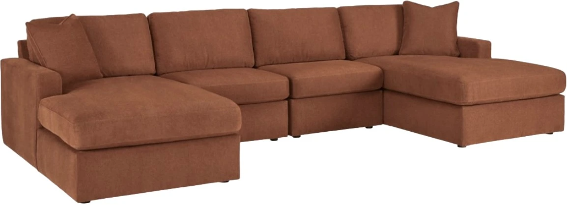 Includes 4 modular pieces: Left-arm facing corner chaise, 2 armless chairs and right-arm facing corner chaise